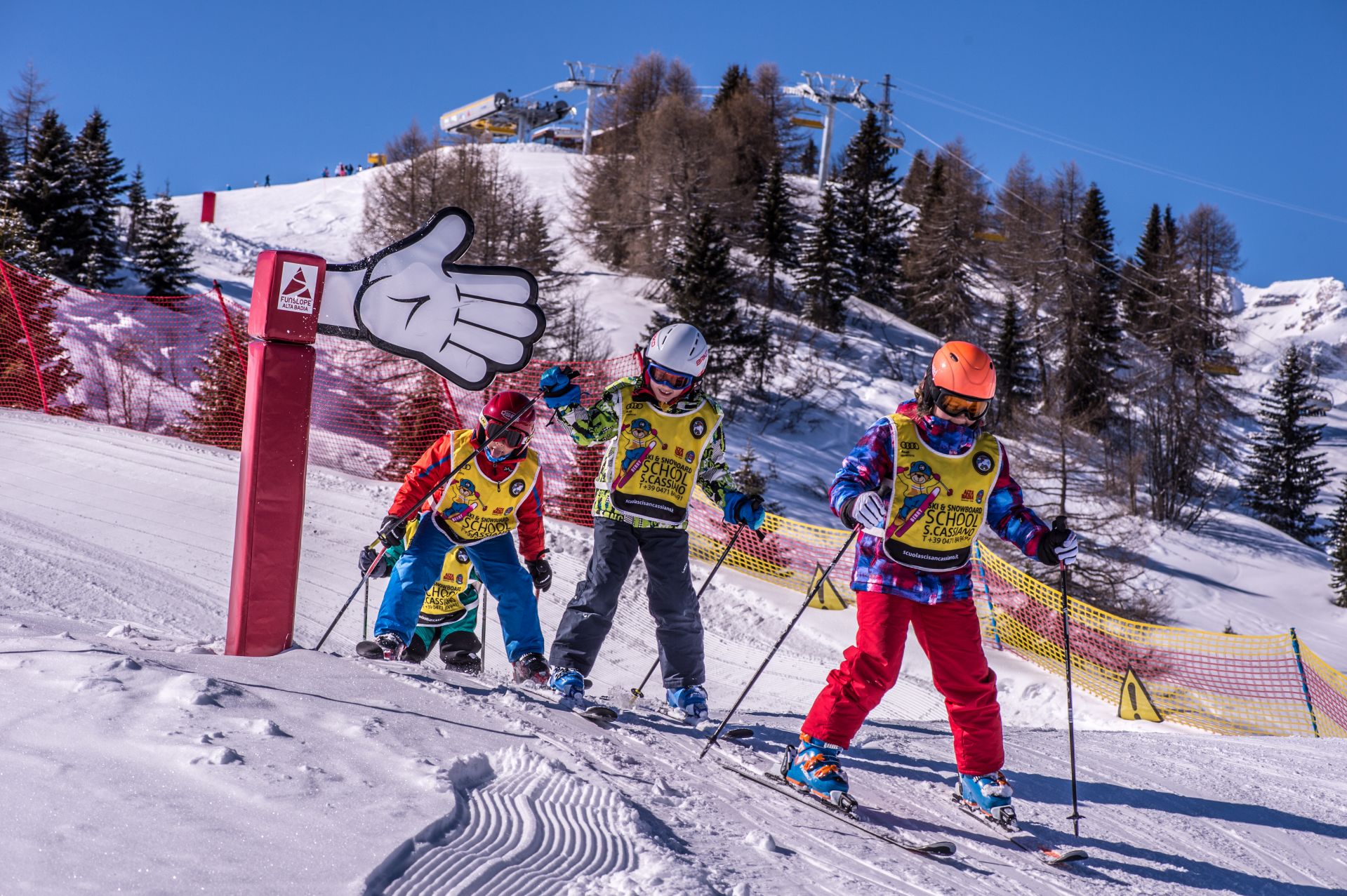 Do your children ski well and don’t feel like leaving the ski slopes early? If yes, then the full-day group course for children in South Tyrol is a great solution! With a good deal of games and entertainment, the ski instructors[LINK Our Team] of the Ski and Snowboard School San Cassiano will turn full-time skiing into full-time fun!